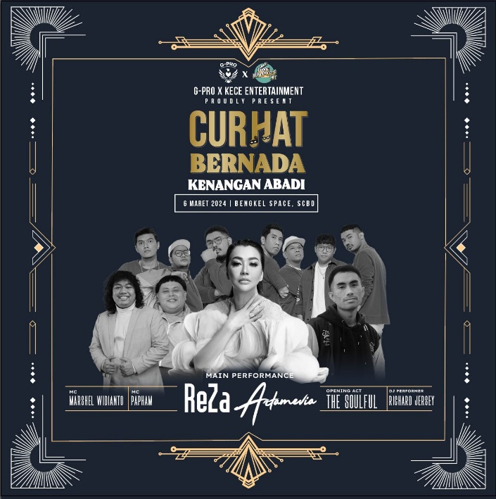 JAKARTA, INDOVIZKA - Get ready to embark on an unforgettable journey through time with "Curhat Bernada: Kenangan Abadi," a dazzling collaboration between G-Production and Kece Entertainment. Join us for an enchanting evening filled with the golden voice of Reza Artamevia and a star-studded lineup that promises to etch everlasting memories.
