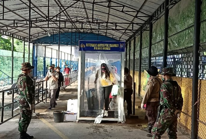 Meskipun sudah memegang kartu kewaspadaan kesehatan atau health alert card (HAC) dari KKP Tanjung Balai Karimun Provinsi Kepulauan Riau para WNI asal Malaysia setibanya di Dumai tetap disemprot menggunakan cairan disinfectant yang disiram menggunakan Automatic Antiseptic Chamber agar mereka semuanya steril dari COVID-19.