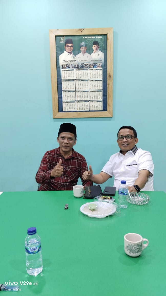 TEMBILAHAN, INDOVIZKA.COM– Yan Eksan pemerhati sekaligus pelaku usaha kopra putih berbincang santai dengan anggota DPRD Provinsi Riau, H Dani M Nursalam, Selasa (7/5/2024) di Kantor PKB Inhil.
