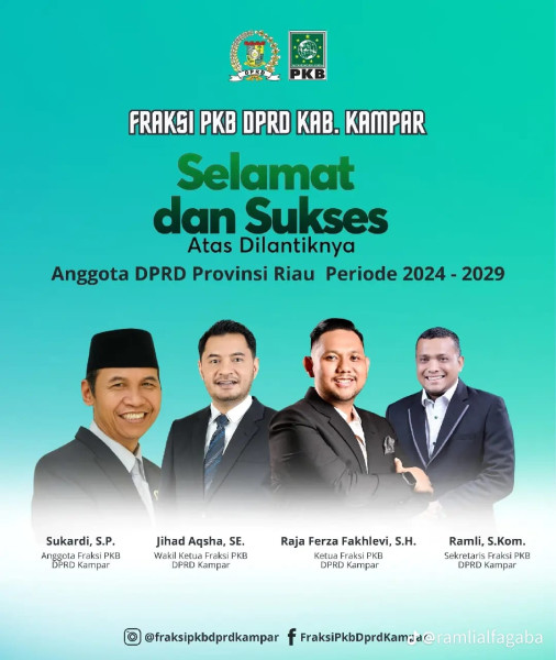 Dengan terbentuknya Fraksi PKB DPRD Kampar, tentu menjadi harapan besar bagi masyarakat Kampar dalam mengawal kebijakan dan program yang dijalankan oleh Pemerintah Daerah Kabupaten Kampar.