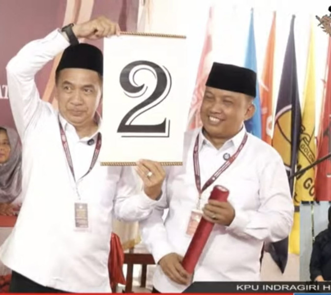 Dalam pencabutan nomor urut untuk dua pasangan calon Bupati Inhil dan Calon wakil Bupati Inhil nomor urut 2 didapat pasangan DR. H. Ferryandi dan H. Dani M Nursalam.