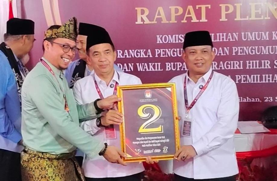 INHIL, INDOVIZKA.COM- Rapat pleno terbuka Komisi Pemilihan Umum (KPU) Kabupaten Indragiri Hilir (Inhil) dalam rangka pengundian dan pengumuman nomor urut Pasangan Calon (Paslon) Bupati dan Wakil Bupati Kabupaten Inhil telah dilaksanakan, Senin (23/9/2024) pagi.