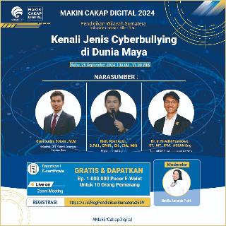 Untuk mengenali jenis cyberbullying di dunia maya, Kementerian Komunikasi dan Informatika (Kemkominfo) RI bersama Kantor Wilayah Kementerian Agama Provinsi Riau, akan kembali menggelar webinar literasi digital untuk segmen pendidikan di wilayah Kabupaten Indragiri Hilir, Rabu (25/9/2024) pagi, pukul 09.00 WIB.