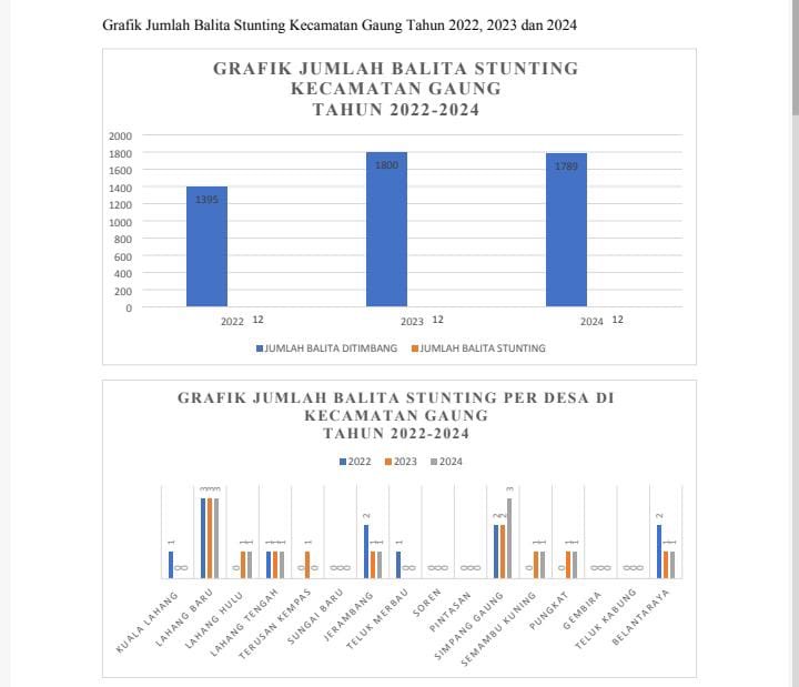 INDOVIZKA.COM- Kecamatan Gaung mencatat penurunan prevalensi stunting selama periode 2022 hingga 2024. Berbagai upaya dilakukan untuk menurunkan angka stunting, termasuk perbaikan gizi pada 1.000 Hari Pertama Kehidupan (HPK).