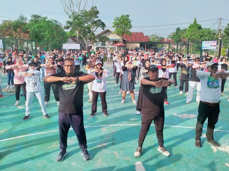 Mayoritas peserta yang datang memang kaum emak-emak dengan penuh antusias, namun terlihat pula bapak-bapak dan tokoh masyarakat setempat yang mulai berkumpul di lapangan. Mereka mengikuti senam sehat "dua jari" bersama calon Wakil Bupati Inhil, H. Dani M Nursalam serta tim pendukungnya.