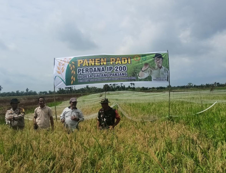 TEMBILAHAN HULU, INDOVIZKA.COM- Desa Sialang Panjang, Kecamatan Tembilahan Hulu, Kabupaten Indragiri Hilir, melaksanakan panen perdana padi dengan metode Intensifikasi Pertanian 200 (IP-200) pada akhir tahun 2024.