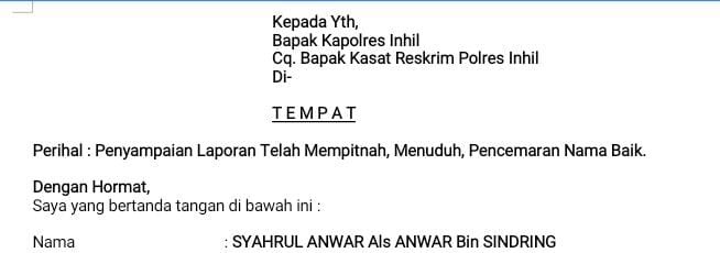 Atas dasar kekeliruan lokasi tersebut, pihak Anwar melayangkan laporan pada hari Kamis (16/01/2025) ke Polres Inhil dengan Perihal Penyampaian Laporan Telah Memfitnah, Menuduh, Pencemaran Nama Baik.