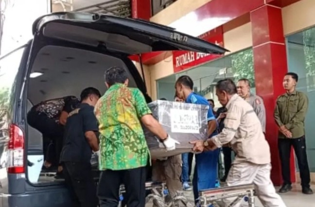 Jenazah dimasukkan ke mobil ambulans sekitar pukul 11.14 WIB, didampingi pihak keluarga dan tim RS Polri.