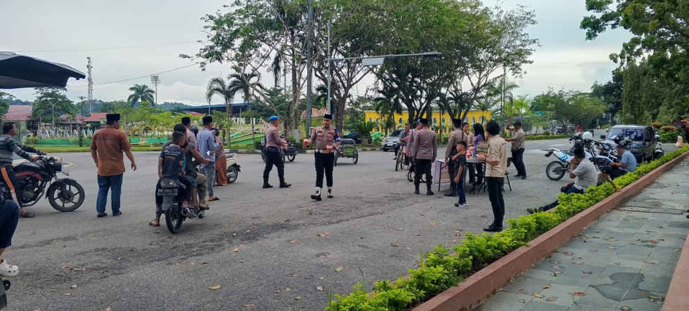 Kegiatan berbagi takjil bagi pengendara dan masyarakat yang melintas di Jalan Prof HM Yamin SH, Bangkinang Kota dipimpin langsung oleh Kasat Reskrim Polres Kampar, KBO dan Kanit di jajaran Polres Kampar.