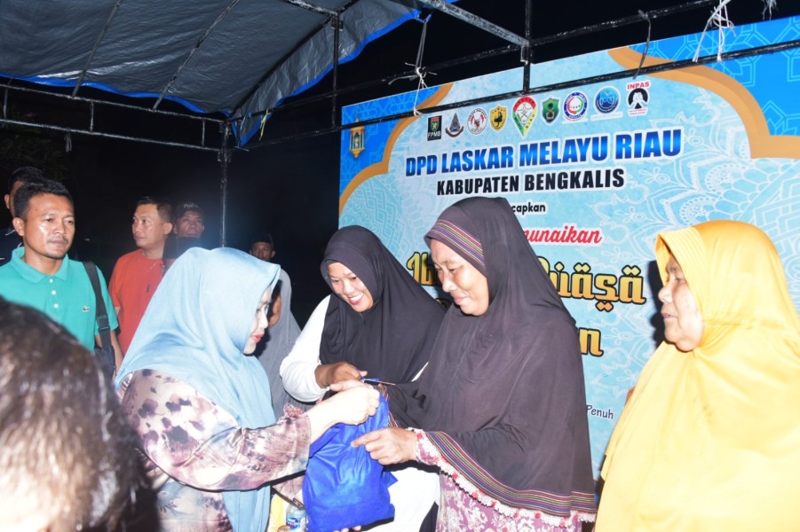 BENGKALIS, INDOVIZKA.COM - Bupati Bengkalis Kasmarni memberikan apresiasi kepada DPD Laskar Melayu Riau (LMR) Kabupaten Bengkalis yang telah menyalurkan 50 paket sembako kepada masyarakat kaum dhuafa di Kecamatan Bengkalis, Senin 17 Maret 2025 malam, bertempat di Bazar Ramadhan, Kecamatan Bengkalis.
