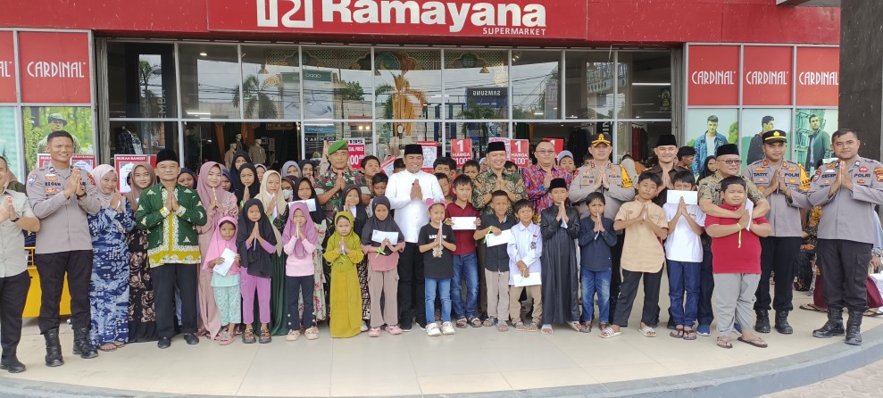 PELALAWAN,INDOVIZKA.COM-Kapolres Pelalawan AKBP Afrizal Asri SIK bersama forkopimda Pelalawan ajak anak yatim berbelanja baju Lebaran di salah satu Pusat perbelanjaan Pangkalan Kerinci. Kamis(273/2025) di Ramayana Pangkalan Kerinci. Kegiatan berbelanja baju Lebaran untuk anak yatim yang ditaja oleh Baznas Kabupaten Pelalawan.