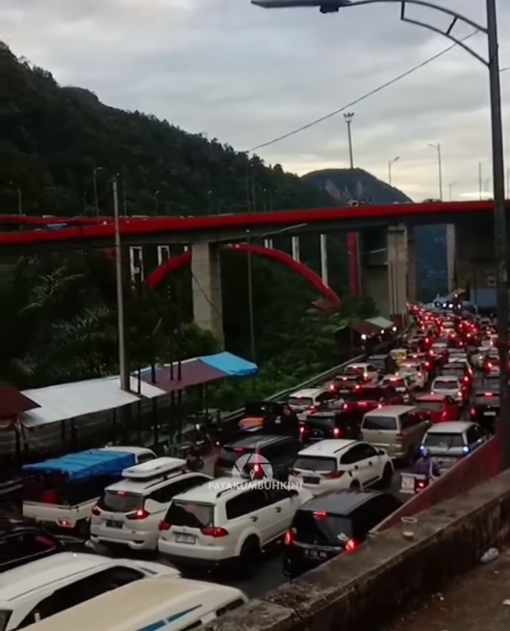 Berdasarkan pantauan akun media sosial @payakumbuhkini, arus lalu lintas di Kelok Sembilan sejak pagi hingga malam terus padat. Sebuah unggahan video memperlihatkan deretan kendaraan yang nyaris tidak bergerak di jembatan layang ikonik tersebut.