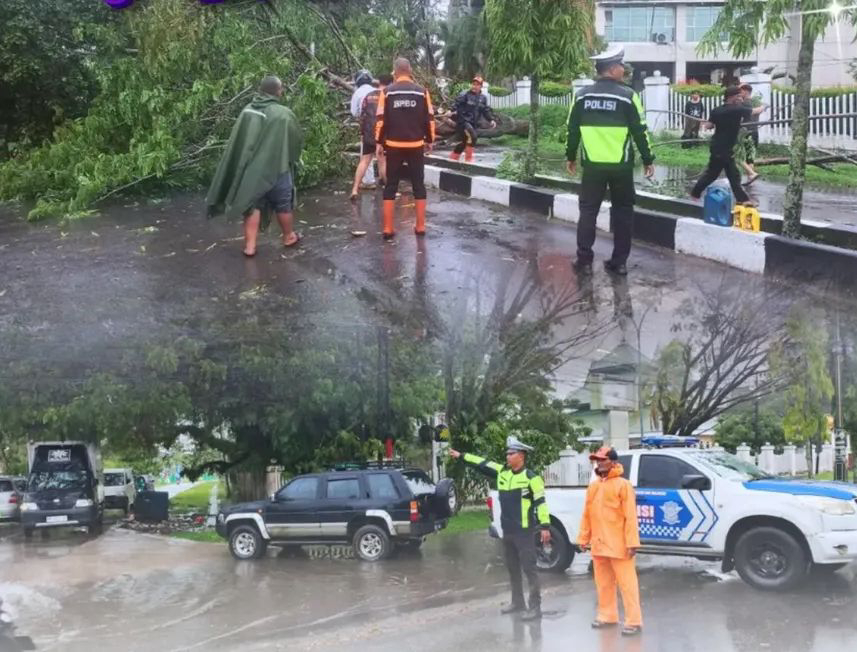 Tak butuh waktu lama, Satlantas Polres Inhil langsung turun ke lokasi, berkoordinasi dengan BPBD dan masyarakat untuk menyingkirkan pohon yang menghalangi jalan. Personel lalu lintas terlihat aktif mengatur kendaraan demi mencegah kemacetan dan memastikan keselamatan pengguna jalan.