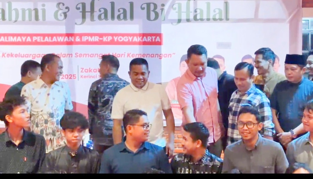 PELALAWAN,INDOVIZKA.COM-Bupati Pelalawan H. Zukri menghadiri kegiatan Silaturahmi dan Halal Bihalal bersama Keluarga Alumni Mahasiswa Yogyakarta (Kalimaya) Pelalawan dan Ikatan Pelajar Mahasiswa Riau Kabupaten Pelalawan (IPMR KP) Yogyakarta, Kamis (10/4/2025). Kegiatan yang penuh kehangatan tersebut berlangsung di Z Park Kerinci Skyline.