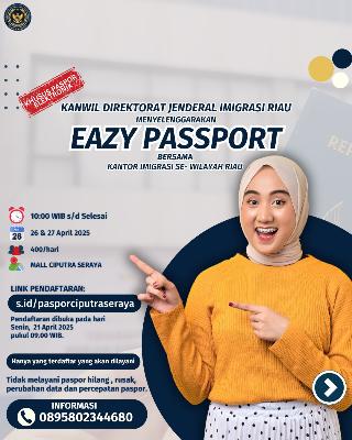 Dalam spanduk imbauan, Mido infokan kembali kalo weekend ini, di @malciputraseraya Mall Ciputra Seraya Pekanbaru bakal ada lagi loh #uruspaspormudah dalam giat Eazy Passport yang diselenggarakan oleh Kanwil Ditjenim Riau bersama seluruh Kantor Imigrasi di Wilayah Riau.