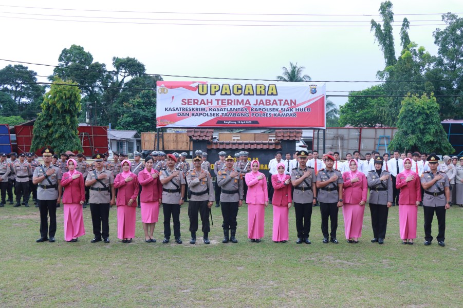 AKP Aulia Rahman resmi menggantikan AKP Asril Syahputra sebagai Kapolsek Tambang dimulai sejak hari ini, Sabtu (19/04/2025) sore, setelah melaksanakan Sertijab.