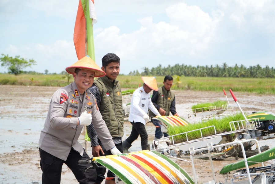 Dukung ketahanan Pangan Kapolres Pelalawan bersama Bupati Pelalawan lakukan Penanaman Padi Serentak