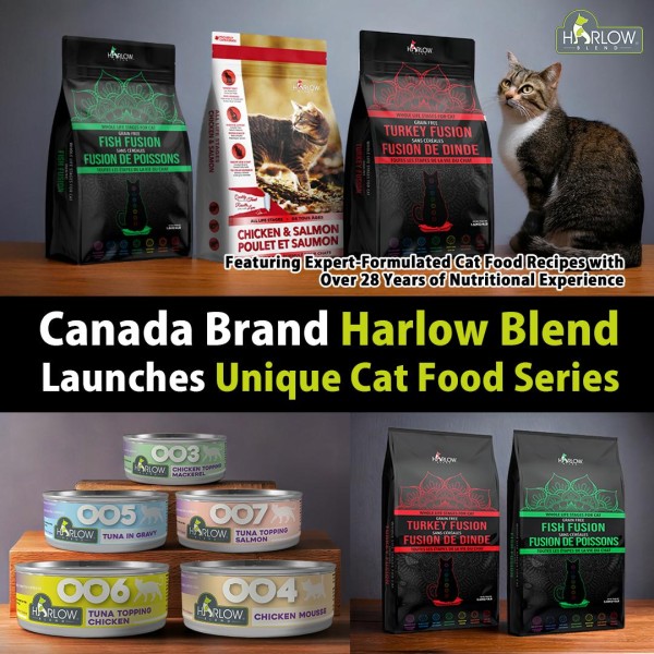 HONG KONG SAR - 28 April 2025 - Harlow Blend Cat Food Series is specifically designed to meet the unique nutritional needs of cats. The Harlow Blend cat food series includes a variety of flavours, all sourced from Canada, featuring flavors such as chicken & salmon, turkey, and ocean fish. Made with high-quality natural ingredients, it ensures that cats absorb every bit of nutrition in each bite.