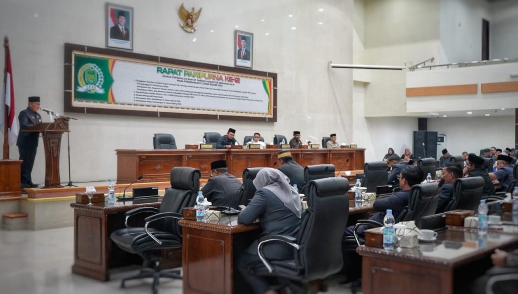 INDOVIZKA.COM - Bupati Indragiri Hilir, Herman, yang diwakili oleh Staf Ahli Bupati Bidang Kemasyarakatan SDM, Muammar Qaddafi, menghadiri Rapat Paripurna Ke-12 Masa Persidangan 2 Tahun Sidang 2025. Rapat dilaksanakan di Gedung DPRD Kabupaten Indragiri Hilir dan dipimpin langsung oleh Ketua DPRD, Iwan Taruna.
