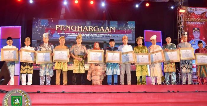 Kapolres Bengkalis AKBP Setyo Bimo Anggoro memberikan penghargaan kepada Bupati Kasmarni dan Wakil Bupati H. Bagus Santoso, Ketua DPRD Bengkalis Septian Nugraha, Dandim 0303 Bengkalis, Kepala Kejaksaan Negeri Bengkalis dan Sekretaris Daerah Bengkalis, para anggota Forkopimda dan penghargaan kepada sejumlah lembaga lainnya, serta sejumlah jajaran di internal Polres Bengkalis.