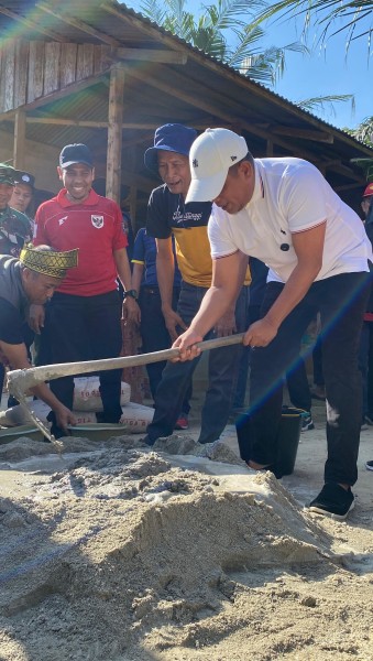 "Kalau ramai-ramai mengerjakannya, tentu akan semakin ringan. Ada yang membata, ada yang menyemen, kerja bisa cepat selesai. Inilah semangat gotong royong yang ingin kita hidupkan kembali." ujarnya.