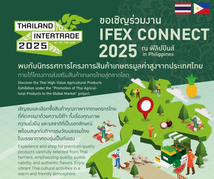 BANGKOK, THAILAND - The Marketing Organization for Farmers (Or Tor Kor), yang berada di bawah naungan Kementerian Pertanian dan Koperasi Thailand, akan menampilkan produk pertanian bernilai tinggi dari Thailand dalam ajang IFEX Connect 2025, yang akan diselenggarakan pada 22–24 Mei 2025 di World Trade Center Metro Manila, Filipina. Pameran internasional ini merupakan bagian dari inisiatif bertajuk “Thailand Intertrade: Produk Pertanian Tropis Bernilai Tinggi untuk Pasar Global”.