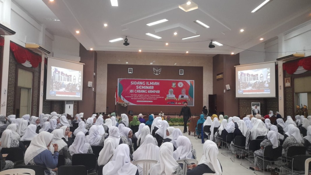 Muscab dan seminar ini, IBI Kampar mengangkat tema "Satukan Langkah dalam Transpormasi Kesehatan untuk Penguatan Pelayanan Kebidanan Berkesinambungan Berbasis Bukti".