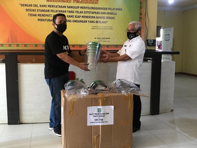 TEMBILAHAN - DPC Partai Kebangkitan Bangsa (PKB) kembali menyerahkan bantuan APD pelindung wajah atau face shield untuk tenaga medis di RSUD Puri Husada Tembilahan, Jumat (17/04/2020).