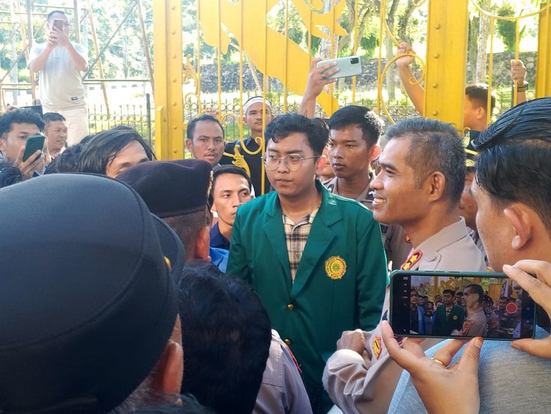 Kapolres Kampar setelah sekian lama berkomunikasi dan berdialog dengan mahasiswa, akhirnya ada komitmen tidak ada aksi menyisiran dan anarkis sehingga mahasiswa diperbolehkan masuk ke kantor Bupati Kampar untuk melaksanakan sholat bersama.