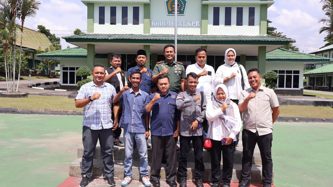 Dandim 0313/KPR Letkol Inf Setiawan Hadi didampingi perwira dan staf di jajaran Kodim 0313/KPR menyambut pengurus dan anggota PWI Kabupaten Kampar, Kamis (12/06/2025) siang, bertempat di Tiga Pilar Cafe, Jalan Jenderal Sudirman, Kelurahan Langgini, Kecamatan Bangkinang Kota, Kabupaten Kampar.