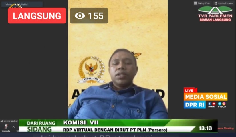 JAKARTA- Anggota DPR RI H. Abdul Wahid meminta pelayanan listrik di kawasan pesisir untuk dapat hidup 24 jam saat menggelar Rapat Dengar Pendapat dengan Direktur PLN Zulkifli zaini yang dilakukan secara virtual Rabu, (22/4/2020).