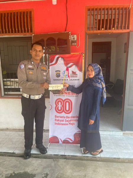 Kegiatan yang dipimpin Ba pengesahan L. Pernando,menyampaikan kegiatan ini sebagai upaya dari Satlantas dalam Rangka Memperingati HUT RI yg ke 80.Dengan penuh semangat kemerdekaan,personil Polres Pelalawan turun menyapa masyarakat yang membayar pajak kendaraan,seraya memberikan edukasi tertib lalulintas.