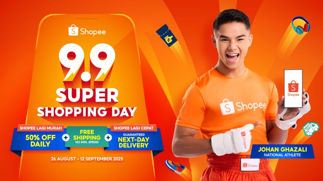 KUALA LUMPUR, MALAYSIA - 4 September 2025 - Step into the ring with Shopee and national sports hero Johan “Jojo” Ghazali this 9.9 Super Shopping Day and shop like a true champ. Get ready for knockout deals including Shopee Lagi Murah 50% Off Daily, Free Shipping with No Minimum Spend, and experience Shopee Lagi Cepat Guaranteed Next-Day Delivery that’s faster than a KO.