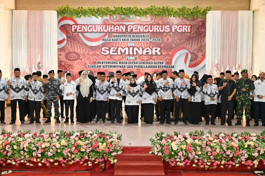 BENGKALIS, INDOVIZKA.COM - Bupati Bengkalis Kasmarni menghadiri pengukuhan Pengurus Persatuan Guru Republik Indonesia (PGRI) Kabupaten Bengkalis Masa Bakti XXIII Tahun 2025-2030. Peppi Sumanty dikukuhkan sebagai Ketua PGRI Kabupaten Bengkalis.
