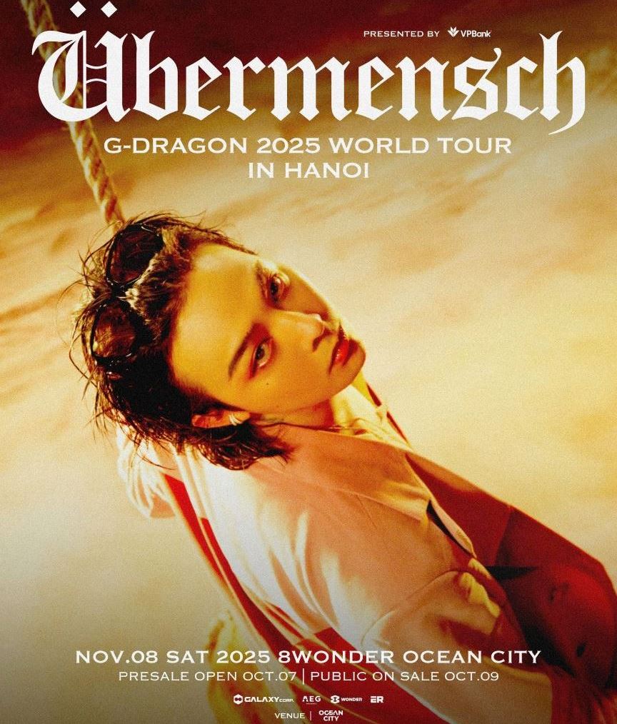 Promoted by AEG Presents, 8Wonder, and ER CMG, G-DRAGON 2025 WORLD TOUR [Ubermensch] IN HANOI, presented by VPBank, will take place on 8 November at 8Wonder Ocean City.