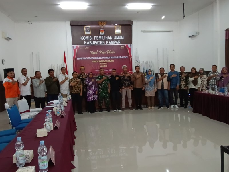 BANGKINANG KOTA, INDOVIZKA.COM- Rapat Pleno Terbuka (RPT) Rekapitulasi Daftar Pemilih Berkelanjutan Triwulan III Tahun 2025 Tingkat Kabupaten Kampar pada hari Kamis (02/10/2025) siang hingga sore, lalu berjalan dengan tertib dan lancar. Rapat Pleno Terbuka Rekapitulasi Daftar Pemilih Berkelanjutan ini telah diputuskan bersama dan diketuk palu oleh Ketua KPU Kabupaten Kampar.