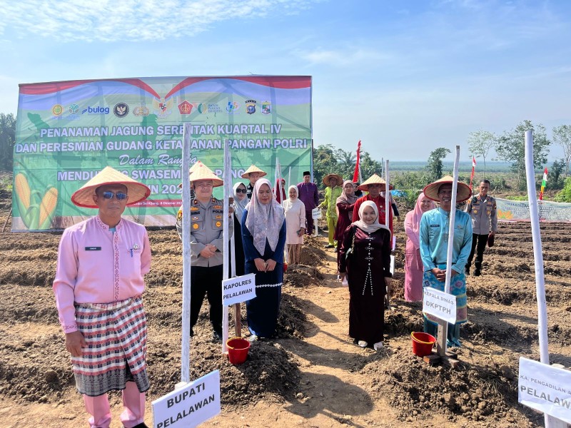 Polres Pelalawan Tanam Raya Jagung Pipil Serentak Kuartal IV Digelar di Desa Lubuk Ogong