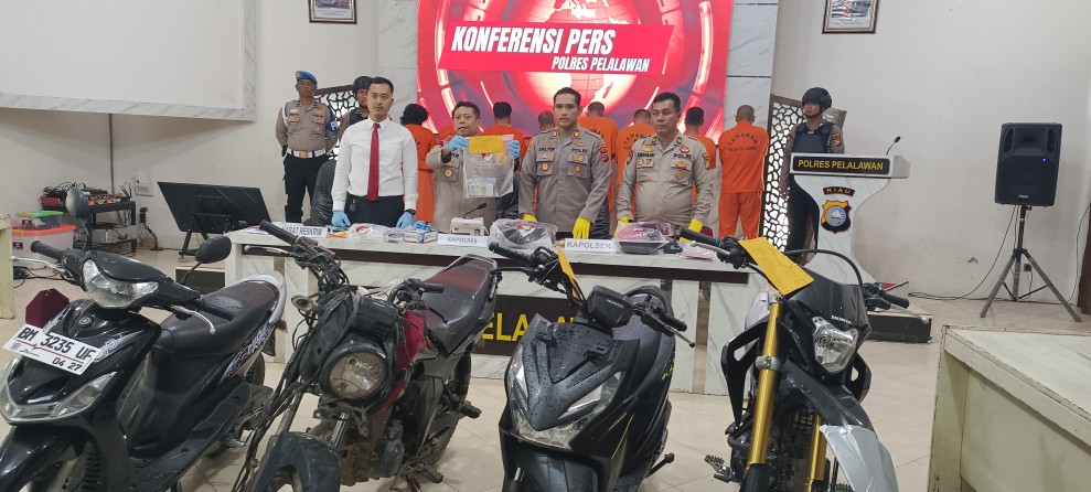 Kapolres Pelalawan AKBP John Louis Letedara SIK, didampingi Kasat Reskrim AKP I Gede Yoga Eka Pranata dan Kapolsek Pangkalan Kerinci AKP Shilton, menyampaikan bahwa perkara tersebut merupakan serangkaian kasus yang terjadi dalam tiga bulan terakhir.