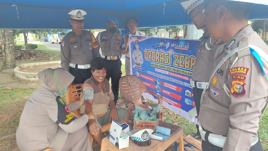 PELALAWAN,INDOVIZKA.COM– Satlantas Polres Pelalawan kembali melaksanakan rangkaian kegiatan Operasi Zebra Lancang Kuning 2025 dengan menggelar pemeriksaan kesehatan terhadap para pengemudi kendaraan umum.Jumat (21/11/2025) di Jalan Lintas Timur, Simpang Kualo, Kelurahan Pangkalan Kerinci Timur, Kecamatan Pangkalan Kerinci.