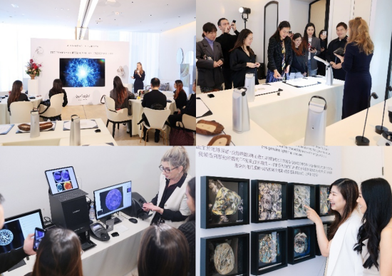 At the natural diamond workshop, participants gained hands-on experience on rough diamond sorting, polished diamond grading, and differentiation of natural diamonds versus synthetics. Participants also had the unique opportunity of viewing a nearby 297-carat rough diamond and kimberlite carrying a 22-carat rough diamond. Also on display was a gem called "Beating Heart", a 0.329-carat rough diamond that features a smaller diamond moving freely inside its larger counterpart, a rarity that showcases the extraordinary conditions under which diamonds can form. This exquisite piece, recovered by De Beers Group and analyzed at the facilities of De Beers Institute of Diamonds, is recorded on the Tracr platform, giving insight into its history and heritage. Upon completion of the workshop, each participant received a natural diamond masterclass certificate from the De Beers Institute of Diamonds.
