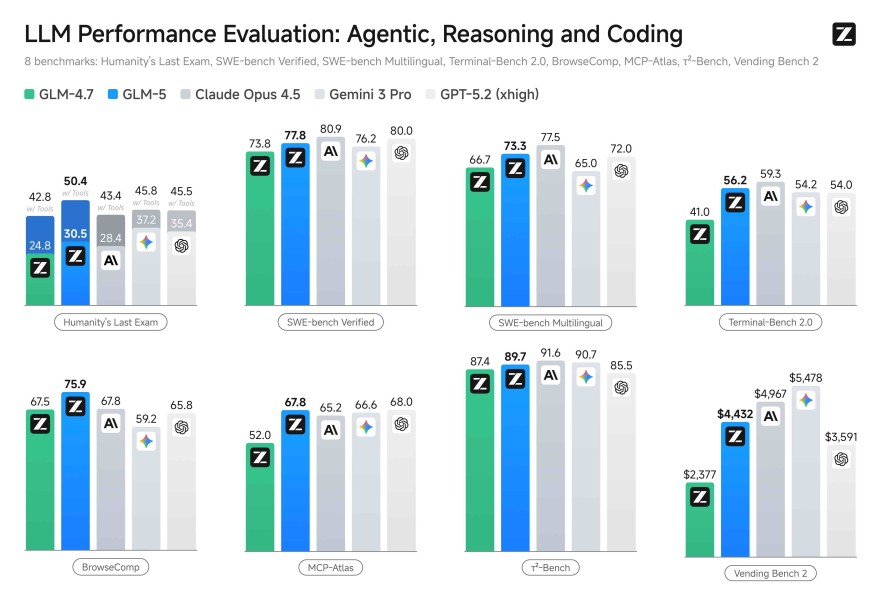 Benchmarks suggest strong gains. On SWE-bench-Verified and Terminal Bench 2.0, GLM-5 scores 77.8 and 56.2, respectively, the highest reported results for open-source models, surpassing Gemini 3 Pro in several software-engineering tasks. On Vending Bench 2, which simulates running a vending-machine business over a year, it finishes with a balance of $4,432, leading other open-source models in operational and economic management.