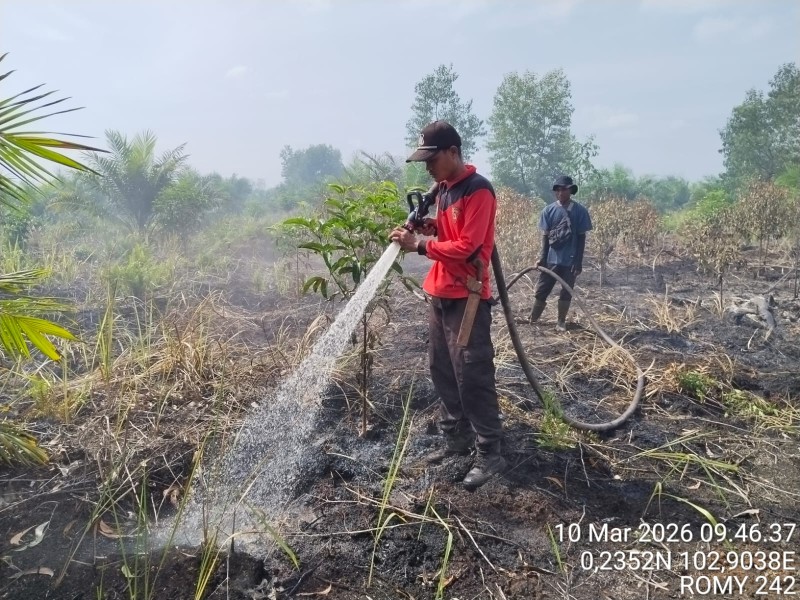 Menurutnya, proses pemadaman dilakukan oleh tim gabungan yang terdiri dari personel BPBD, pihak perusahaan yang berada di sekitar lokasi, serta masyarakat setempat. Mereka bekerja sama memadamkan api agar tidak meluas ke area lain.