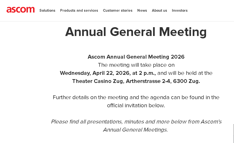 Please find the invitation to the Ascom Annual General Meeting 2026 enclosed.