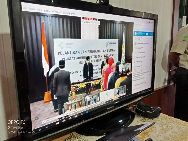 TEMBILAHAN– Direktur Jenderal Pencegahan dan Pengendalian Penyakit (Ditjen P2P) Kementerian Kesehatan RI, dr. Achmad Yurianto secara resmi melantik Pejabat Administrasi di Lingkungan Ditjen P2P, Rabu siang (20/05/2020).