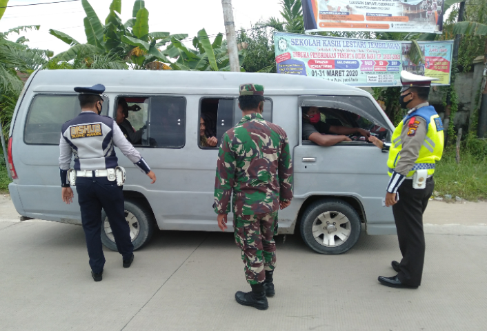 Operasi Ketupat Lancang Kuning 2020 yang berguna mencegah penyebaran Covid-19, Tim gabungan terdiri dari Polres Inhil dalam hal ini Sat Lantas Polres Inhil, Kodim 0314/Inhil serta Dishub Inhil tampak bekerja sama dilapangan.