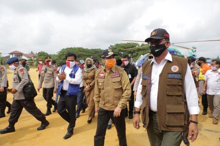 ROKAN HILIR - Gubernur Riau (Gubri) Syamsuar bersama Tim Gugus Tugas Penanganan (GTP) Covid-19 Riau mengunjungi Kabupaten Rokan Hilir (Rohil) terkait persiapan pelaksanaan New Normal Covid-19 di daerah tersebut.