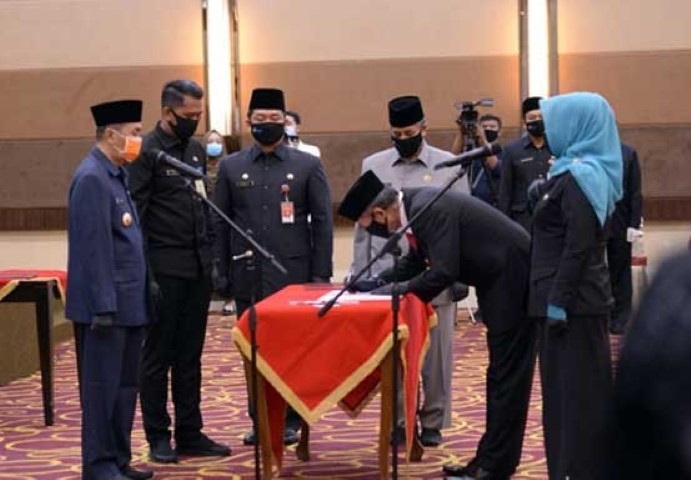 PEKANBARU - Gubernur Riau Riau Riau telah melantik 20 dari 24 pejabat eselon II di lingkungan Pemprov Riau hasil assessment panitia seleksi beberapa waktu lalu.