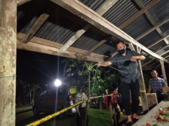 "Ketika sampai di TKP, ditemukan korban sudah tidak bernyawa lagi dengan kondisi leher terjerat tali, tergantung pada bagian teras. Ketika itu langsung dilakukan olah TKP serta visum ke Puskesmas Ukui," terang Kasubbag Humas, seraya mengatakan pihak keluarga menolak untuk dilakukan visum.