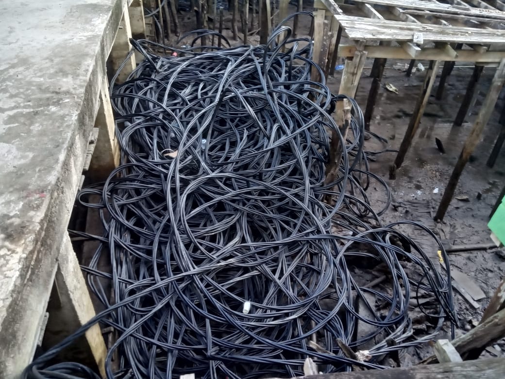 Photo : Kabel dan tiang listrik PLN di salah satu desa di Inhil terbengkalai