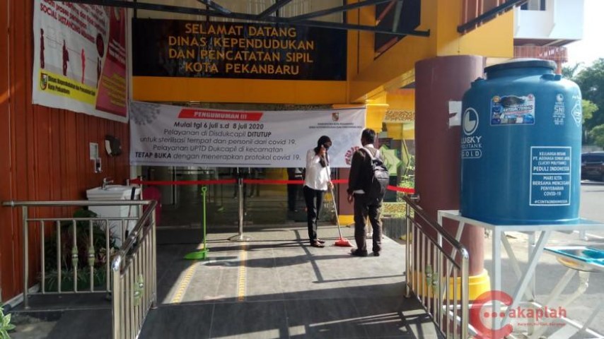 PEKANBARU - Kantor Dinas Kependudukan dan Pencatatan Sipil (Disdukcapil) Kota Pekanbaru, Senin (6/7/2020) tutup sementara. Tidak ada aktivitas di kantor pelayanan yang berada di Komplek Mal Pelayanan Publik (MPP) Jalan Sudirman itu.